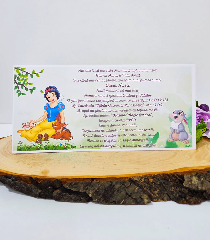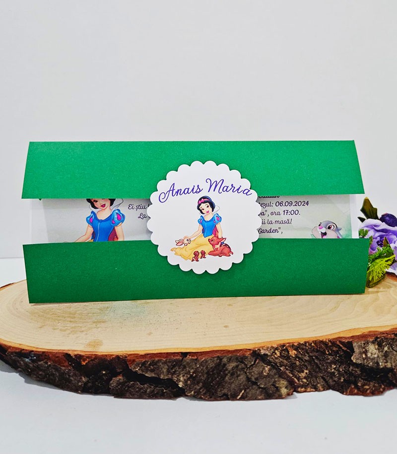 Invitatie de botez confectionata dintr-un carton alb mat si coperta verde.