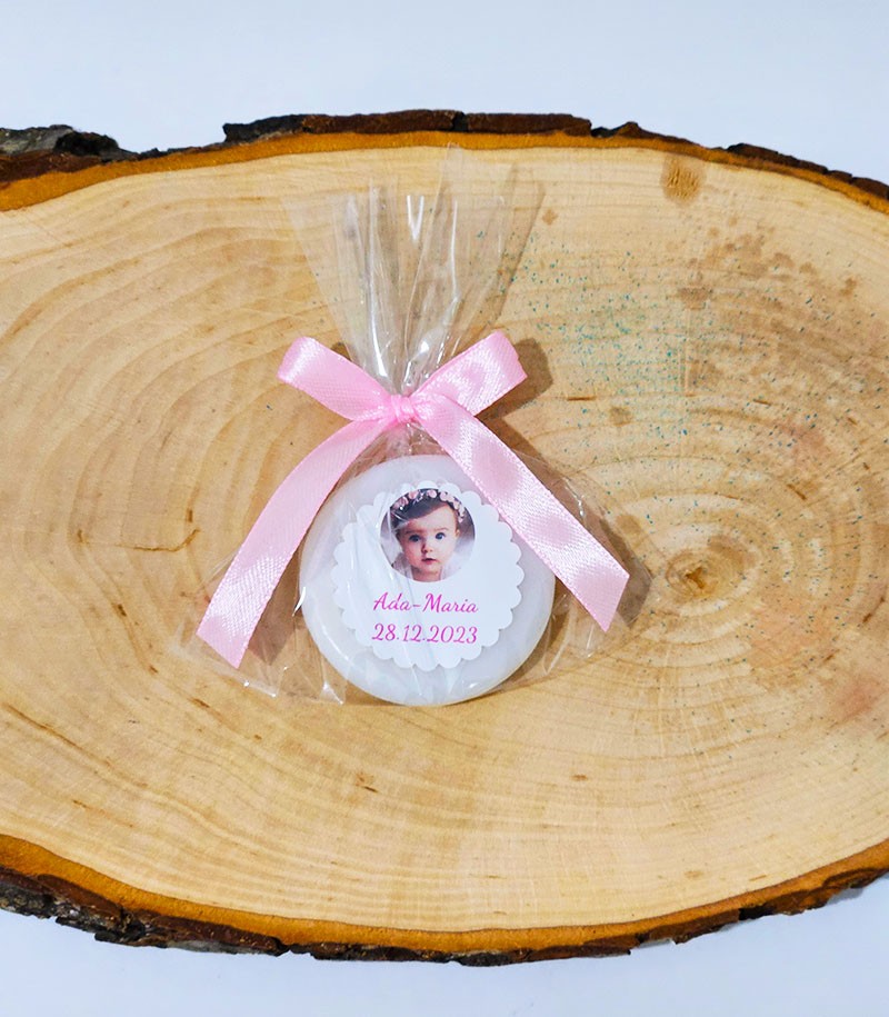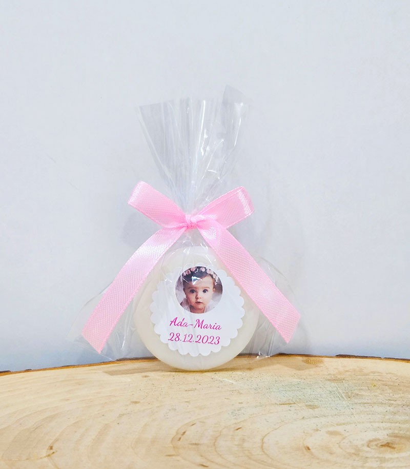 Marturie sapunel accesorizata cu eticheta poza bebe.