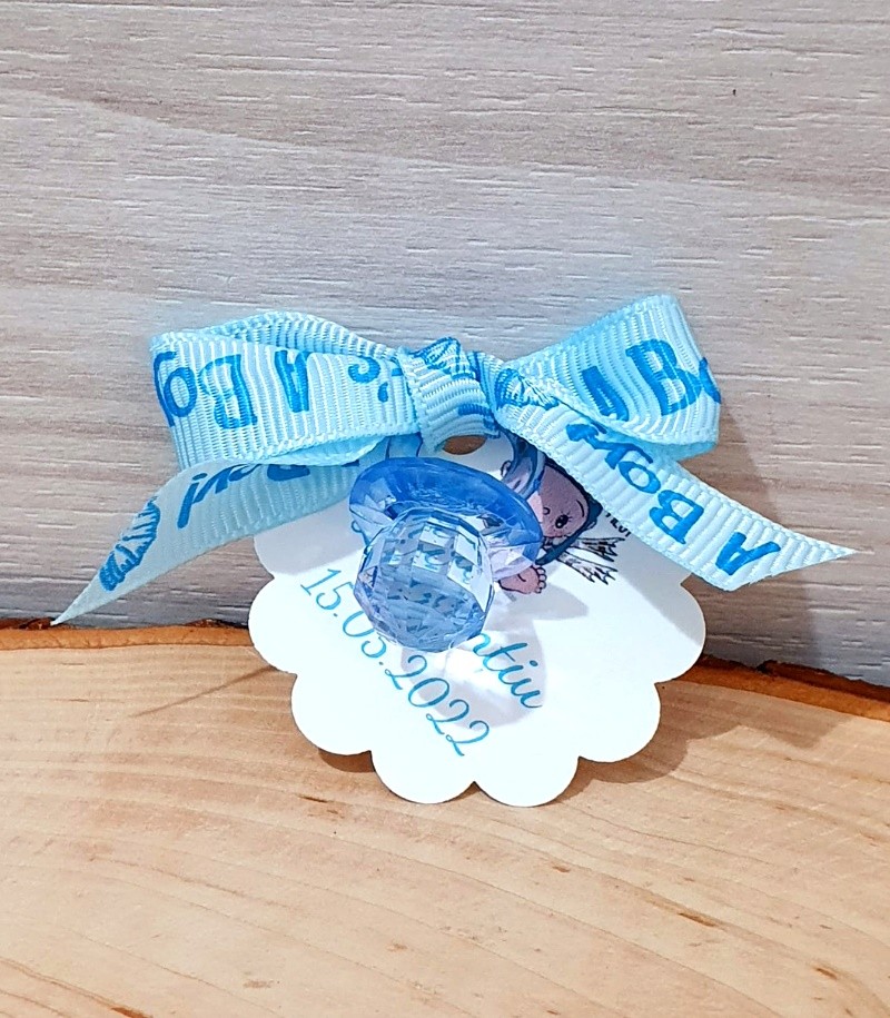 Marturie de botez in forma de suzeta realizata din polimer transparent.
